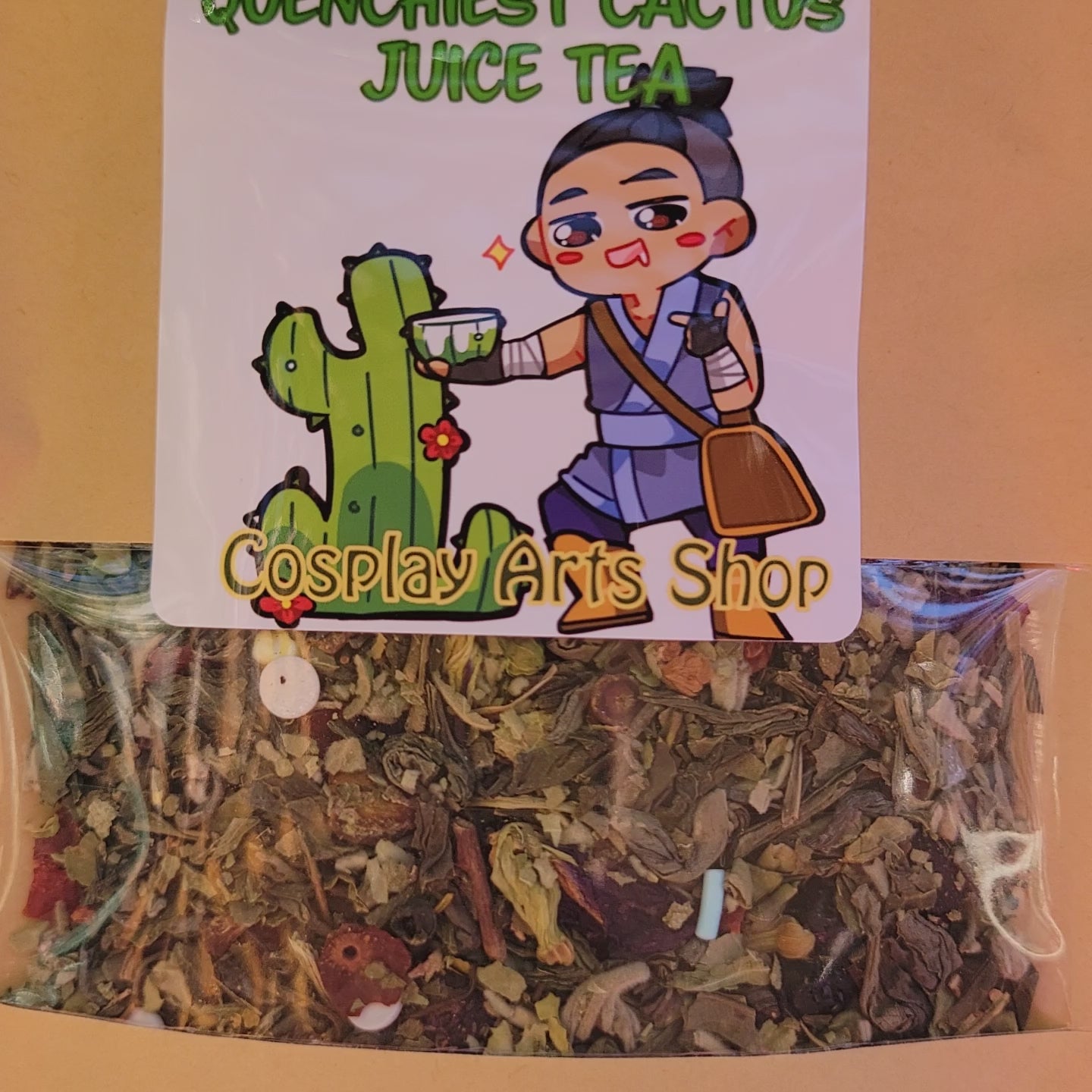 Green Tea with a fruity blend and marshmallow leaf! It's so pretty it's like a mirage! No actual cactus